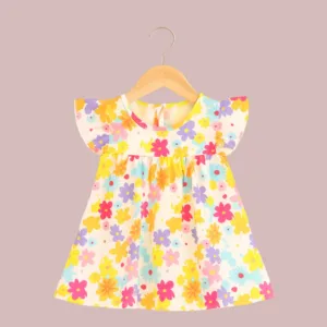 New Stylish Color Full Flower printed Baby Girls Dress, Daily wear Frocks