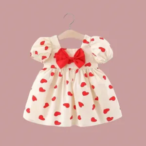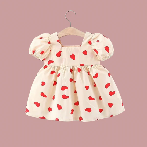 New Stylish Heart printed Baby Girls Dress With Beautiful Sleeve, Daily wear Frocks